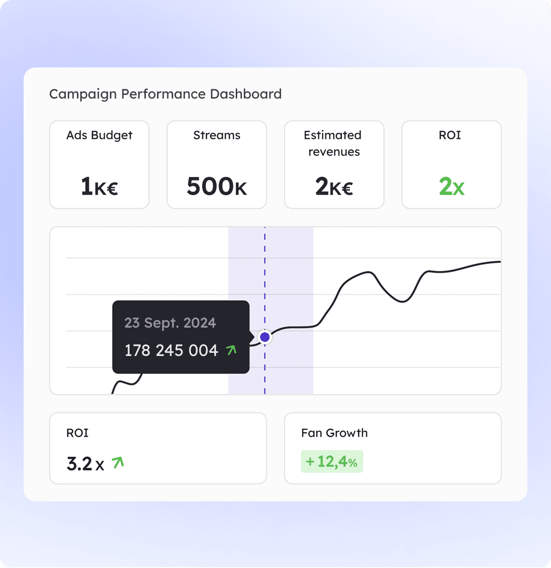 Base For Music offers a seamless and effective way to manage your campaigns. From advanced targeting tools to real-time reporting, our platform is designed to maximize your results. You'll also benefit from personalized support and regular updates by email, ensuring that you're informed every step of the way.