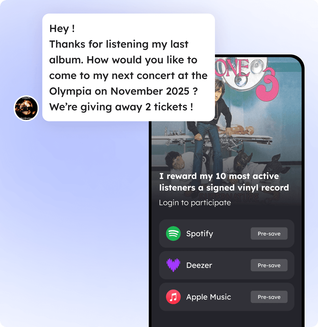 Thanks to direct access to your fans on the platforms, launch new marketing activations to develop and to animate your community of super fans.